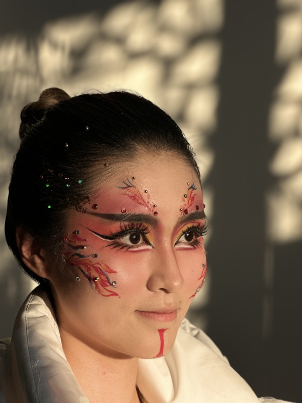 图为武工商学子参与央视春晚武汉分会场主题节目《星汉耀江城》凤凰舞蹈排练妆造