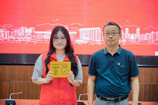 图为左宗文副校长为学生颁发结业证书 摄影:刘皓辰