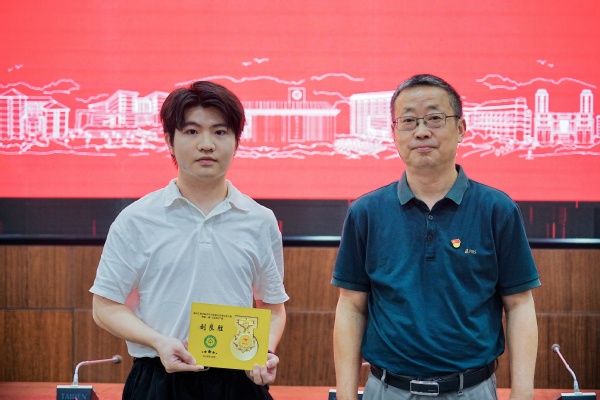 随后,左宗文副校长为第一期结业学员一一颁发了结业证书,第一期的两名学员也将象征着“青马工程”班学员培养之路的传承与延续的旗帜正式交接给了第二期的学员代表。