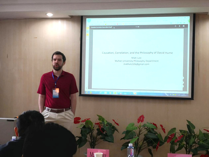 会议中,美国南加州大学哲学博士、武汉大学副教授Matt Lutz围绕“因果关系、相关关系与戴维·休谟哲学”展开了讲座。首先他从科学界中的两句俗语“相关性不是因果关系,不能从相关性中推断出因果关系”出发,提出了关于“相关性”和“因果关系”的讨论,随后根据戴维·休谟和伊曼努尔·康德对这两理论关系的理解进行分析,最后得出了自己的见解。“相关性不是因果关系,但是我们能从相关性中推断出因果关系这一结论。从相关性中推断因果关系是推断因果关系的唯一方法。”