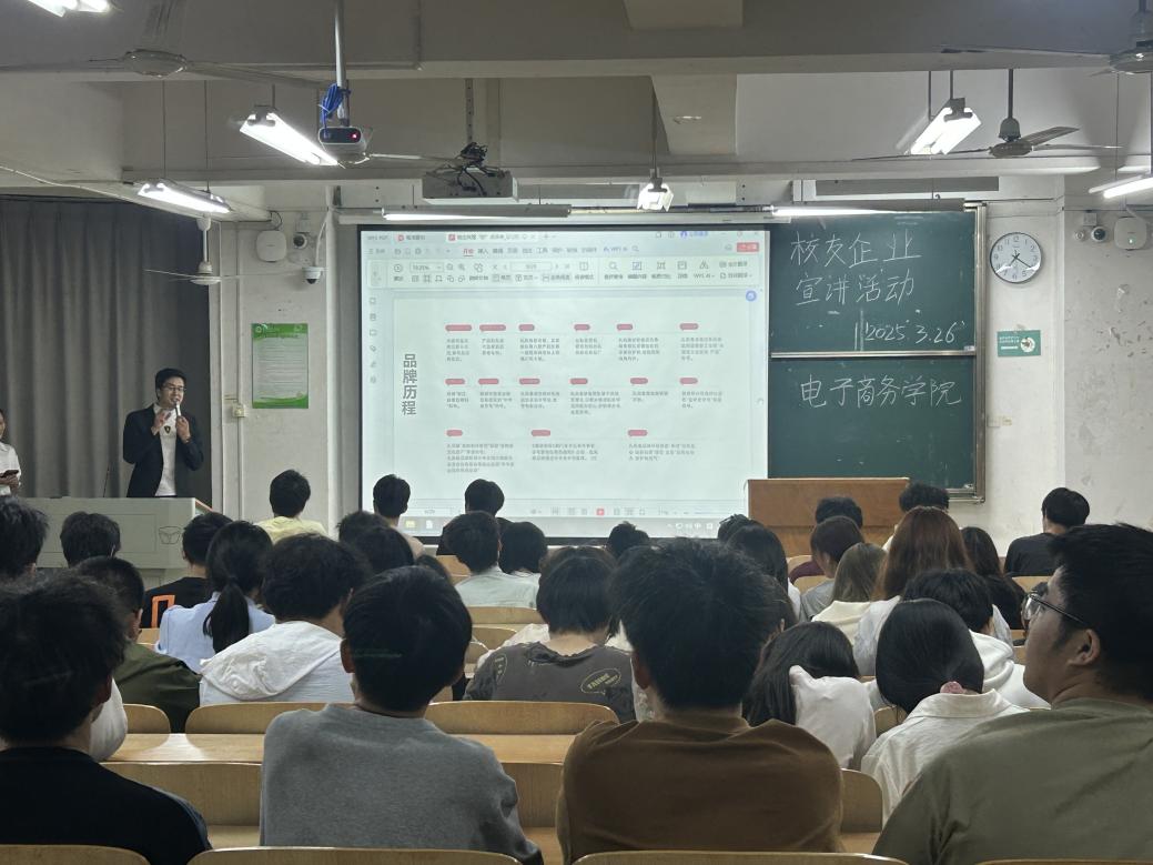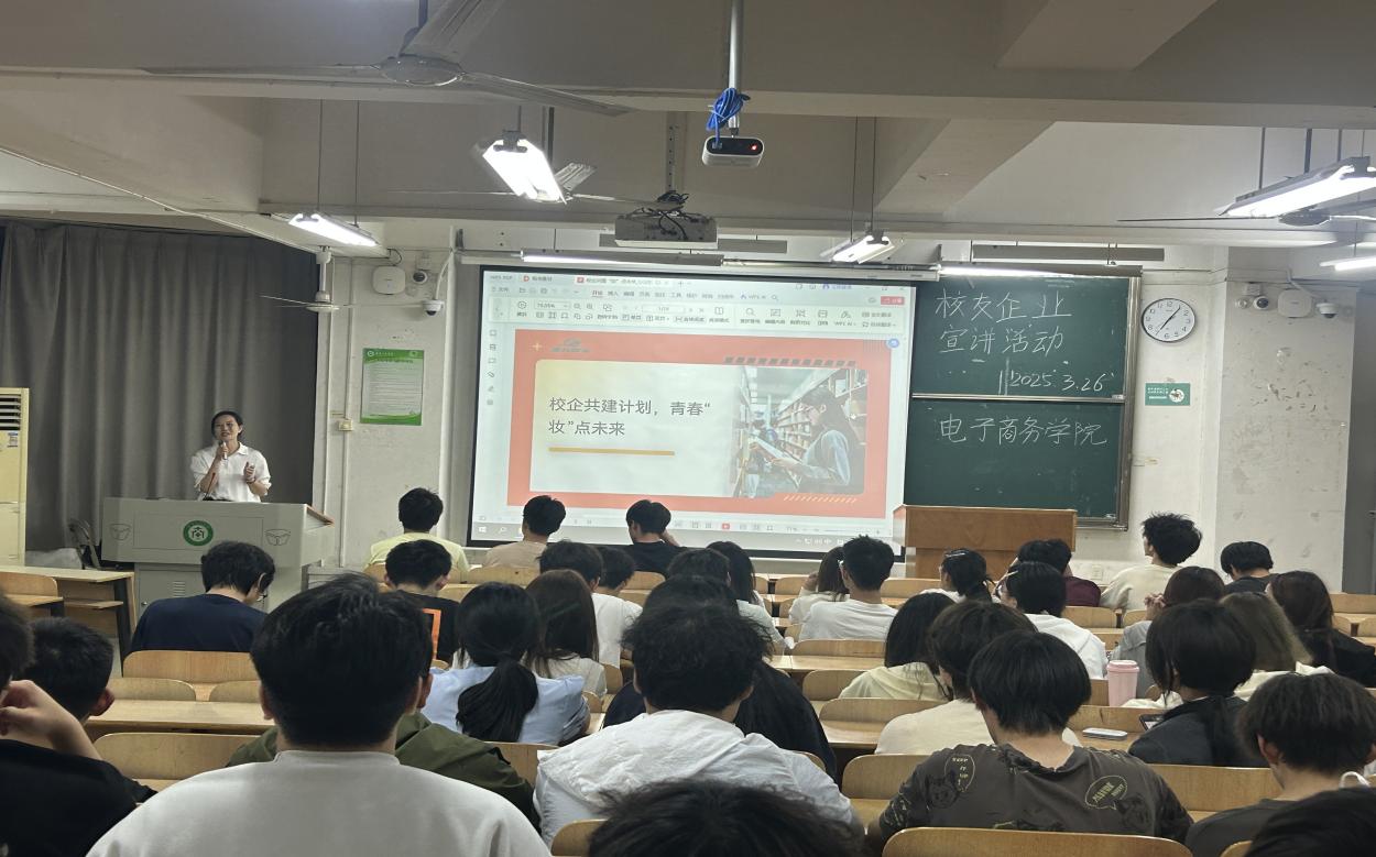 在交流环节,团队成员围绕电商行业新趋势、职场技能需求等话题与学生们展开讨论。针对“如何平衡学业与创业准备”“美妆电商的竞争壁垒”等提问,团队结合自身经历给出建议:“在校期间应夯实专业基础,同时多参与实践项目积累经验。”现场气氛活跃,学生们纷纷表示收获颇丰。