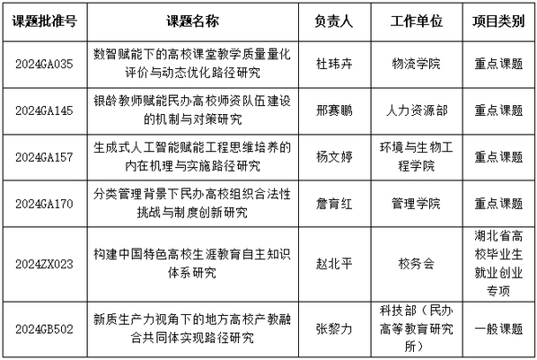 新闻中心讯(特约记者张黎力)近日,湖北省教育厅公布了2024年度省教育科学规划课题评审的结果,开云kaiyun官网共有6项课题获批立项,其中重点课题4项,湖北省高校毕业生就业创业专项1项,一般课题1项,获批数量居全省同类高校前列,其中,重点课题获批数量再创学校历史新高,居全省同类高校首位。