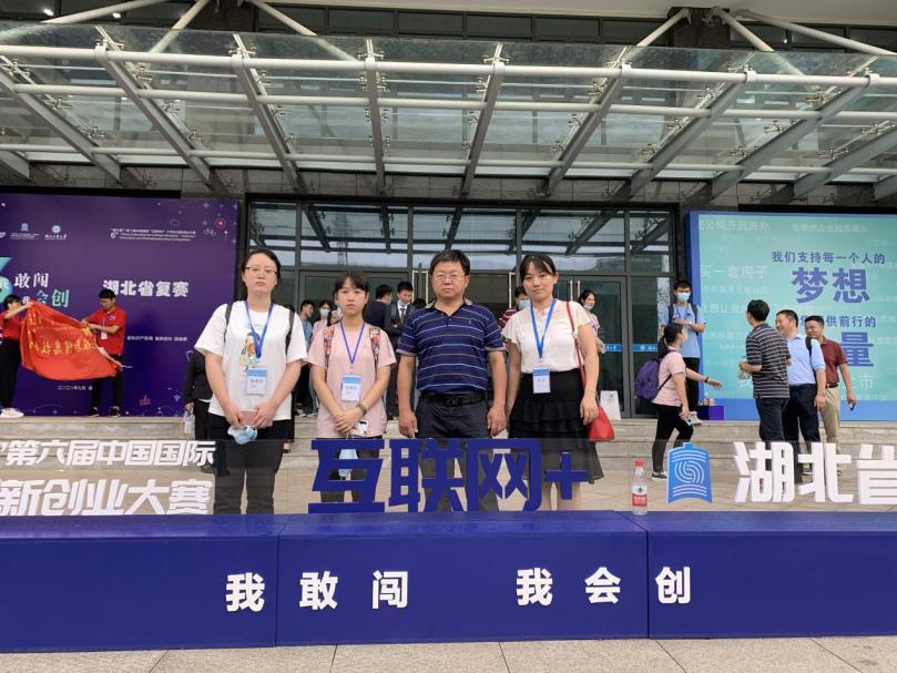 图1- 2020年应时院长和张婷老师带领学生团队参加第六届“互联网+”大赛湖北省现场赛获省级银奖