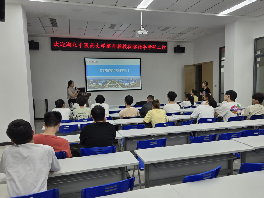 6月19日下午3:30,湖北中医药大学信息工程学院,硕士研究生导师、解丹教授应邀来到人工智能学院,在15栋314学术报告厅,为2026届有考研意向的学生作了“湖北中医药大学管理科学与工程学硕、电子信息专硕”专题宣讲会。人工智能学院副院长张婷、2026届考研指导工作组成员宫健丽、尹静、胡定兴参加了此次讲座。