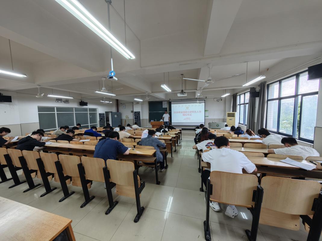 本次模拟考试在综合楼308教室举行,严格按照全国硕士研究生招生考试的流程和规范进行。本次模拟考试包括英语,数学和专业课三大核心科目,严格对标考研初试标准,旨在帮助学生提前感受真实考试氛围,锻炼心理素质,提高时间分配和答题技巧。学院高度重视考研工作,由考研指导小组全体教师联合校外考研机构共同完成了出卷工作,并在考前精心布置考场,考试过程中秩序井然,监考教师认真负责,学生们全身心投入,自觉遵守考场纪律,独立完成答卷,展现了良好的学习和积极向上的精神风貌。