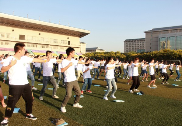 图为学生们正在晨练 摄影:胡爽