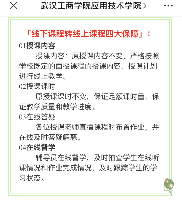 受疫情影响,按照教育部和湖北省统一部署,学校延迟春季开学返校时间。2月24日,应用学院全体师生按照原定正常开学时间,开始网上教学与指导。