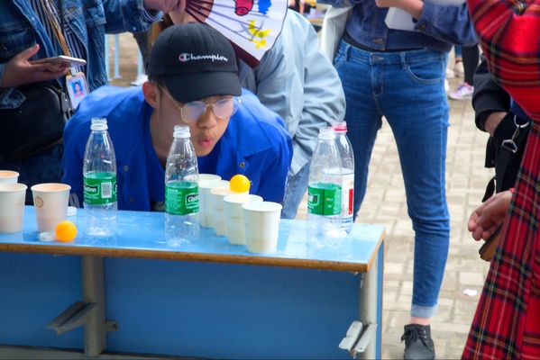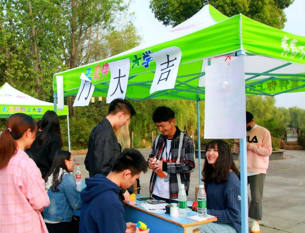 在二食堂前主干道上,吉尼斯世界小游戏挑战、冷门小知识宣讲等活动结合如今最流行的抖音视频元素,也吸引了不少同学前来打卡。
