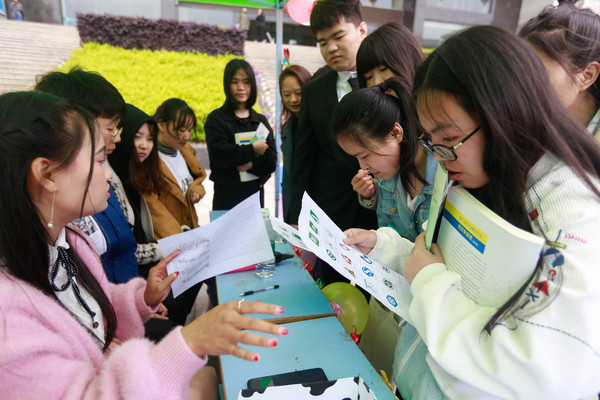 早上七八点,开幕式第一项活动——“绿”见便在综合楼门前精彩上演。在这里,同学们用实际行动争做绿色校园使者和先锋,只要正确分类生活垃圾、辨认环保标志,或将三张废旧的A4纸折成千纸鹤,便可获得精美小礼品或者绿色多肉植物和多肉养护指南。在开幕式上,通过这样的小活动,逐步引导大家关注“绿色校园”建设,为今后绿色校园的全面创建进一步营造良好氛围,打造基础。