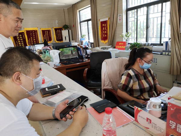 图为王曼副部长办理党委工作队下沉黄家湖社区正式报到