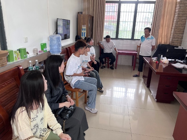 为了后期更好的进行实践活动的开展,此次服务队的全体师生与棠树岭村干部在党员活动室对本次活动的开展进行座谈。首先,王书记对我们的到来表示热烈的欢迎,在会议过程中王书记还讲述了关于棠树岭村的发展历史、现状与未来规划,并且希望我们志愿服务队在本次三下乡活动中尽自己的微薄之力,能为棠树岭村未来发展出谋划策。