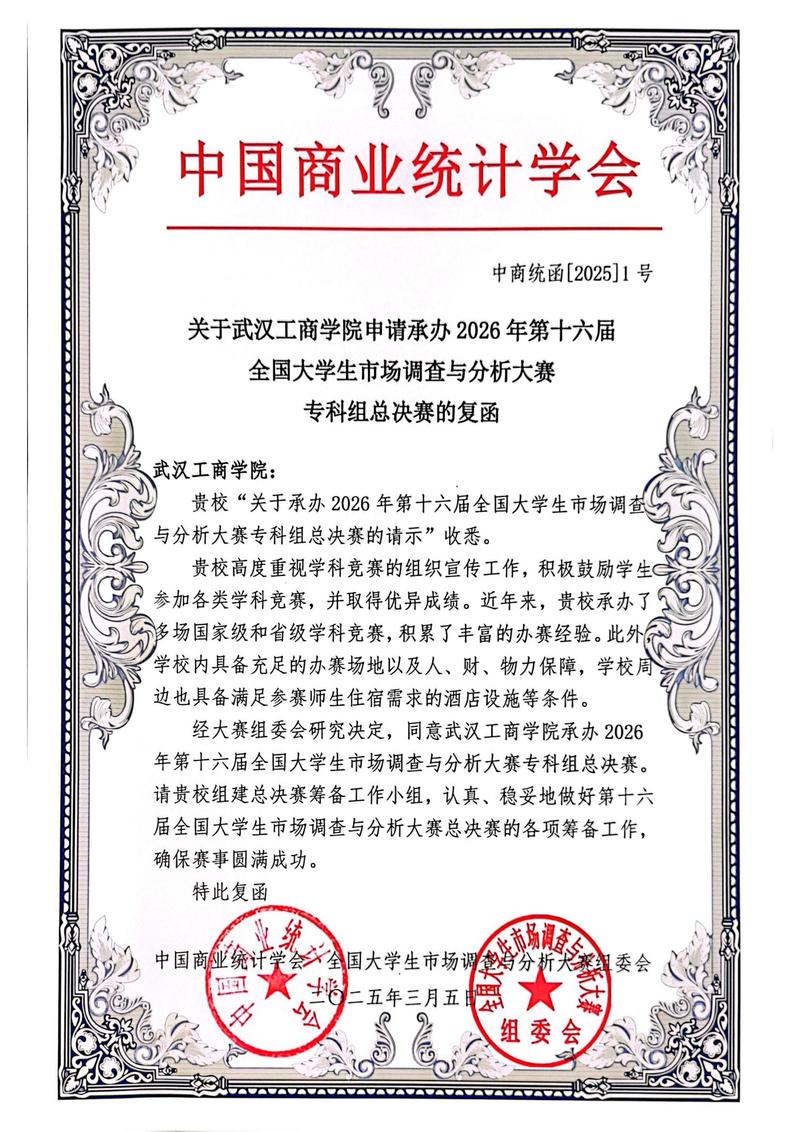 (特约记者汪雅乔、熊晓亮)近日,开云kaiyun官网正式收到中国商业统计学会复函,确认我校成功获得2026年第十六届全国大学生市场调查与分析大赛专科组总决赛承办权。这是对我校学科竞赛组织能力和产教融合成果的充分肯定,标志着学校将在全国高等教育创新实践领域发挥更重要的平台作用。