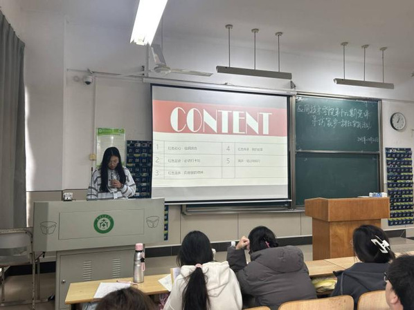 张明娟同学以《寻访家乡的那抹红——一座古都的赤诚印记》为题,讲述洛阳的红色脉络:抗战时期,洛阳是豫西抗日根据地重要部分,八路军驻洛办事处等遗址见证先烈热血;新中国成立后,“焦裕禄精神”“工匠精神” 推动许多企业成长,成为“中国制造的脊梁”;如今满城 “红马甲” 志愿者与 “洛阳红” 牡丹,让红色精神焕发新活力。让大家认识到洛阳的“红” 是奋斗、是信仰,更是代代相传的希望。