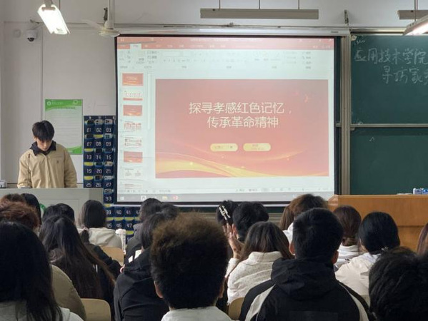 2025年10月22日中午,当阳光洒满弘德楼 205 教室,应用技术学院学生党支部 “寻访家乡的那抹红” 实践活动也正在在如火如荼地进行,以“探寻家乡红色记忆,筑牢精神奋斗根基” 为核心,四位入党积极分子用PPT、故事讲述的方式,带领大家走进河南洛阳、湖北孝感、河北邯郸与河南信阳的红色土地,带领同学们感受自己家乡红色记忆的深厚底蕴。